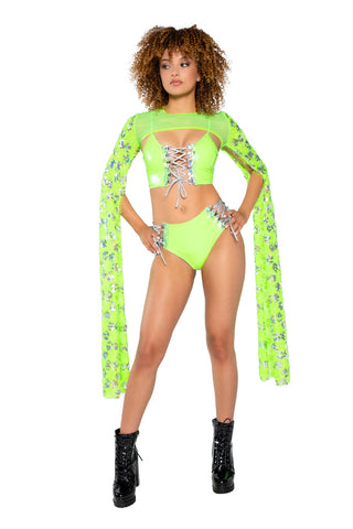 Sequin Drop Sleeve ShrugFabric: 90% NYLON 10% SPANDEX/ACRYLIC FAUX FUR TRIMWash: HAND WASH COLD/COOL BLOW DRYMade in USA